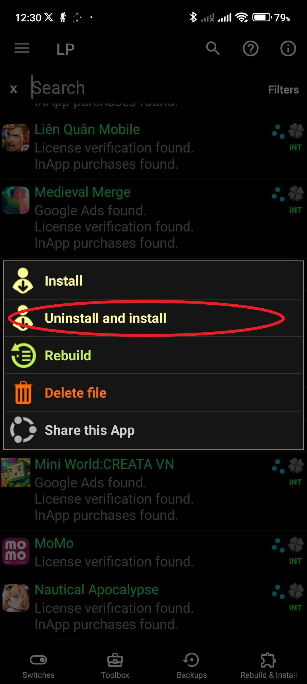 - Finally, install the modified APK file by tapping the “Go to file” button and then the “Uninstall and install” button. Afterward, press “Yes”, then “Ok”, then finally “Install”.