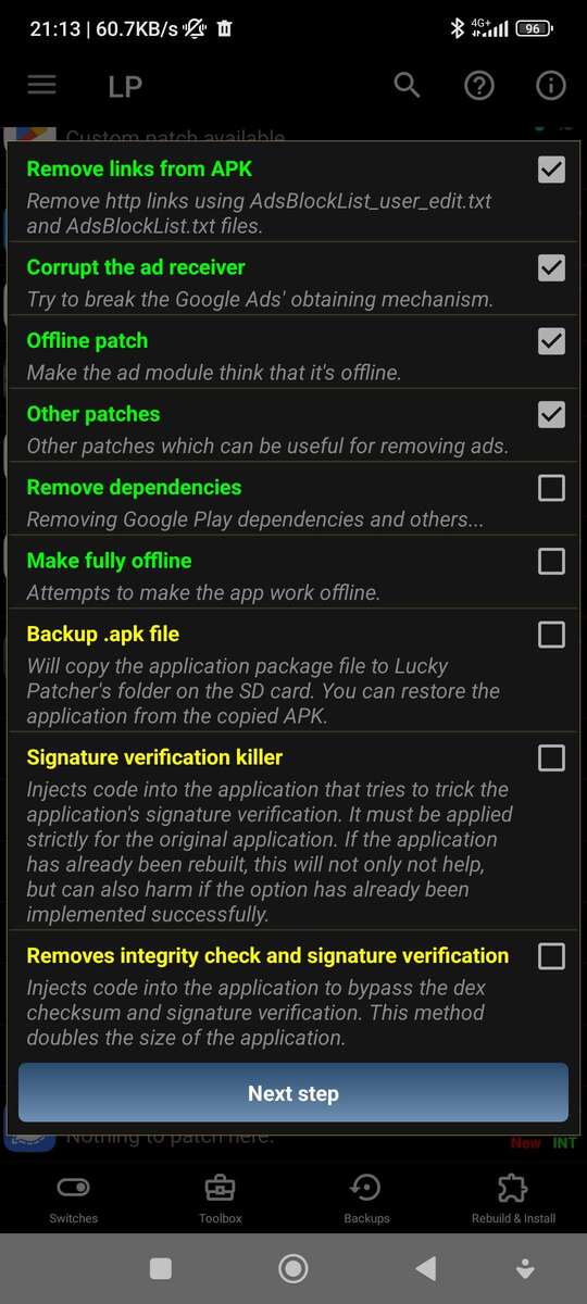 Section titled “Set up Lucky Patcher”Read the important info about LP section.